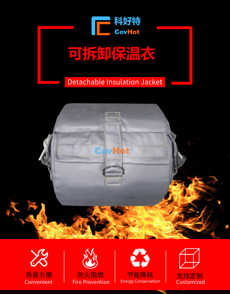 防腐蝕可拆卸法蘭閥門保溫套是目前的閥門管道、設(shè)備用來(lái)保溫隔熱的優(yōu)良產(chǎn)品。它可用在不同溫度,不同形狀的管道和冷熱設(shè)備上使用,而且可以異形定制,與設(shè)備完美貼合。對(duì)于要經(jīng)常拆卸、維修養(yǎng)護(hù)、清洗的管道設(shè)備尤為實(shí)用。其綜合經(jīng)濟(jì)效益好。是化工領(lǐng)域節(jié)能保溫理想選擇!