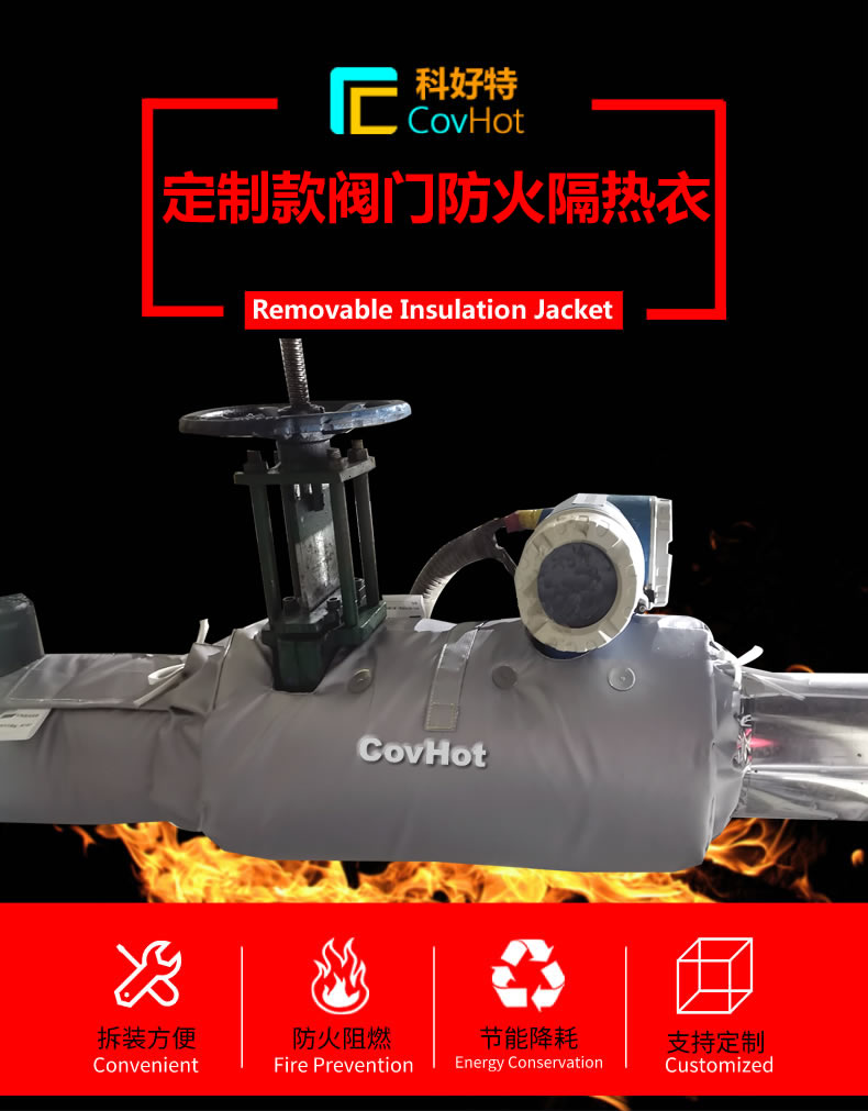 蒸汽閥門保溫是管線保溫工作的薄弱環(huán)節(jié),雖然閥門所占面積不大,但由于保溫效果不理想,其散熱損失不可低估。科好特可拆卸蒸汽閥門保溫套采用非石棉耐高溫布做表層,內(nèi)填充納米纖維,通過高強度耐高溫線制作而成。可以取代大部分傳統(tǒng)的以鋁皮隔熱效果優(yōu)良,拆裝方便,可多次重復使用等優(yōu)點。