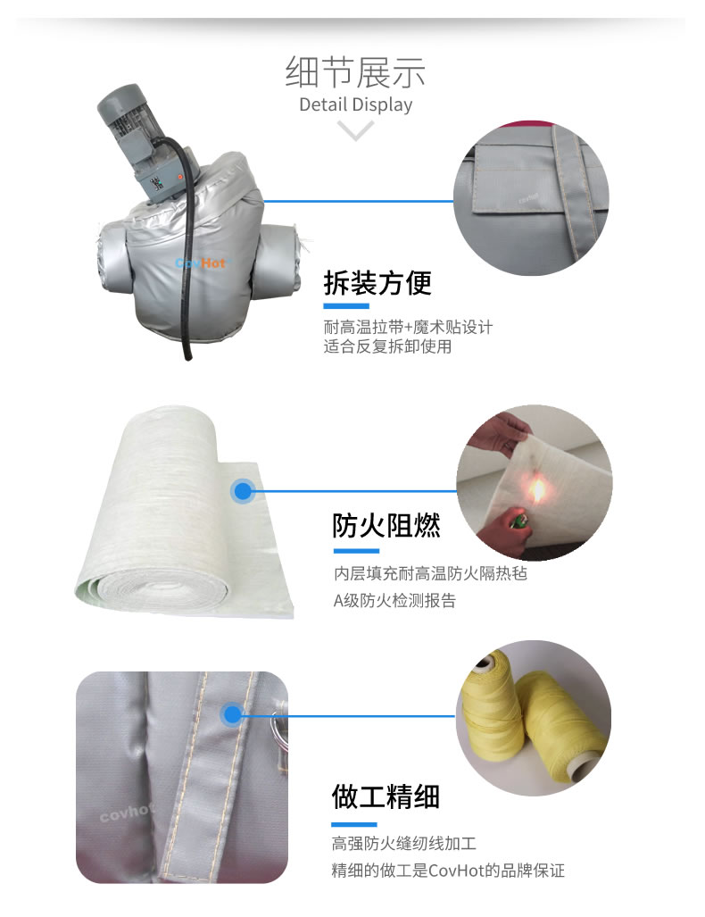 可拆卸式泵體保溫套,也可以叫做泵體保溫衣,泵體保溫罩??刹鹦妒奖皿w保溫套使用耐高低溫、防火保溫材料制作而成,拆卸安裝方便簡(jiǎn)單,保溫隔熱性能高。