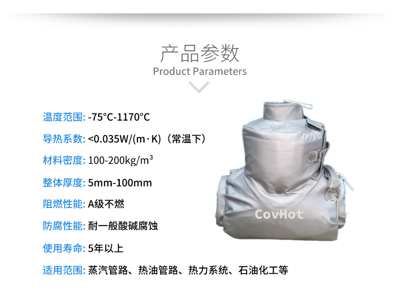 可拆卸截止閥保溫套可以滿足不同領域的柔性保溫應用需求??梢院芊奖氵M行拆裝操作,可重復多次使用,以最大化其經濟效益,降低熱損耗。對于一些表面形狀特殊、復雜的設備隔熱(防火),柔性隔熱防火)套也能顯示其獨特的優勢。經測試計算,采用本產品后,通??晒澕s熱能達90%以上。有些用戶短投資回收期僅為6個月左右。