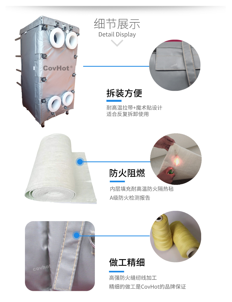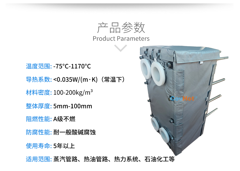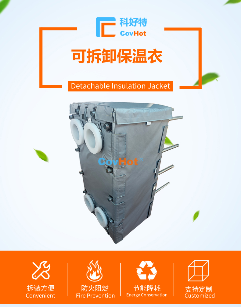 針對(duì)以上的問(wèn)題,科好特自主研發(fā)的節(jié)能型板換保溫套,根據(jù)設(shè)備不同的尺寸形狀量身定制,可有效減少換熱器的熱損失,裝拆方便,可重復(fù)使用。節(jié)能型板換保溫套是工業(yè)節(jié)能保溫理想選擇!