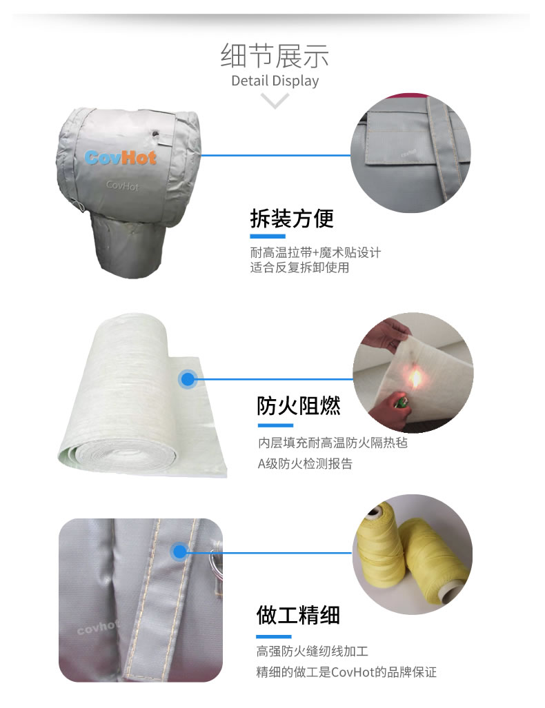 可拆卸保溫衣在大修時不需要破壞保溫層、可實現快速拆裝,不產生工業固廢和粉塵污染,能確保環境和設備的清潔、衛生,有利于設備的正常運轉;